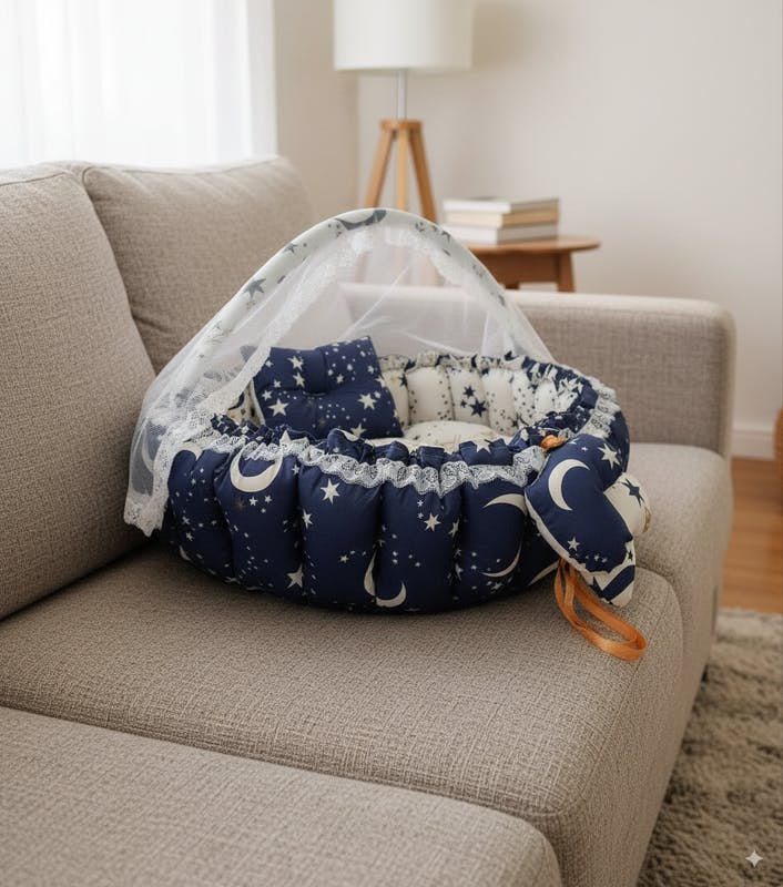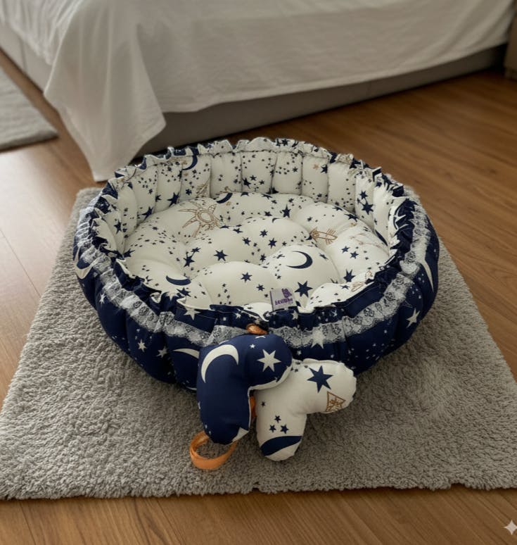 - Circular Design: All-around protection and comfort- Soft Cotton: Gentle fabric with plush filling- Multi-Use: Perfect for sleep, play, and relaxation- Mosquito Net: Detachable and easy to install- Elegant Colors: Stylish options for every home
